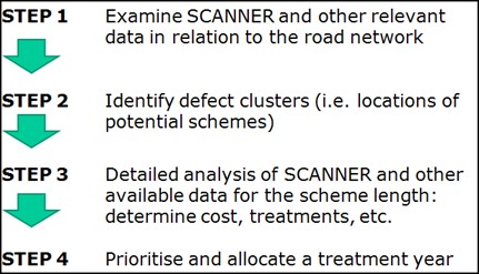 Often authorities have SCANNER, SCRIM® and Deflectograph data, visual condition data and other data sources that are used as part of scheme identification. Developing a prioritised list that considers all available data can be a complex task. WDM® has developed a number of tools and techniques to help authorities in developing scheme lists.