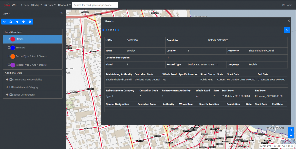 The Scottish NSG allows user to manipulate the map to the precise location required, based on street descriptor, ESU and locality etc or by record start and end dates.