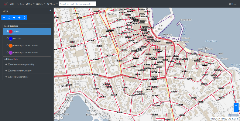 Within the mapping software, a range of layers can be set up which can be used to help break down data into an easy-to-read format. These layers can be used to colour code ESUs, asset types (such as road type) and owner types – as the data changes so do the layers. Support for imported layers to show alongside NSG data in the map is included, for example, parish, district and authority polygons.