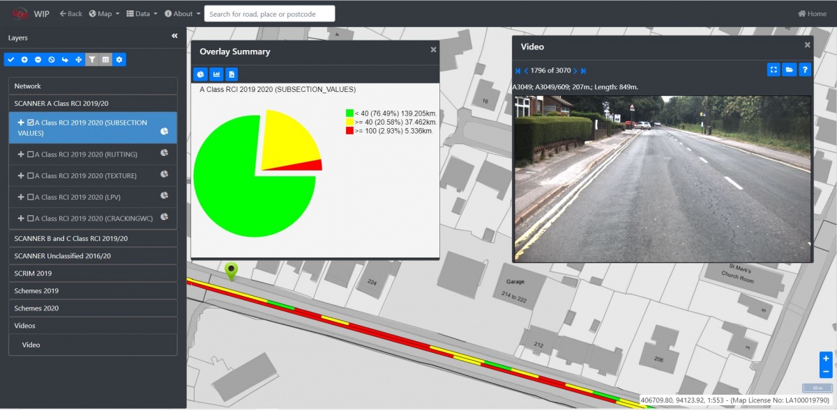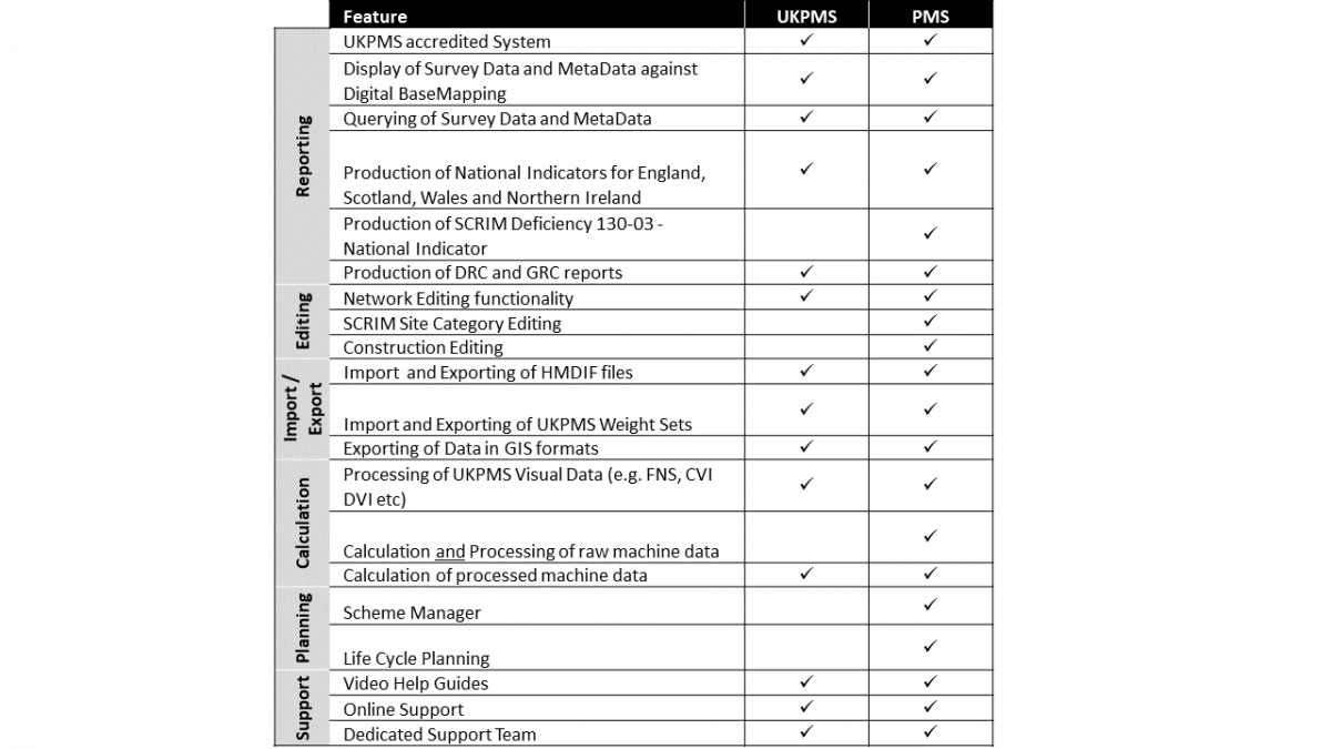 It incorporates all the UKPMS approved processing methods for SCANNER, SCRIM®, Deflectograph, CVI, DVI and FNS. The system is, therefore, able to manage data at the rawest level and thus supports re-processing, trending, maintenance updates etc.