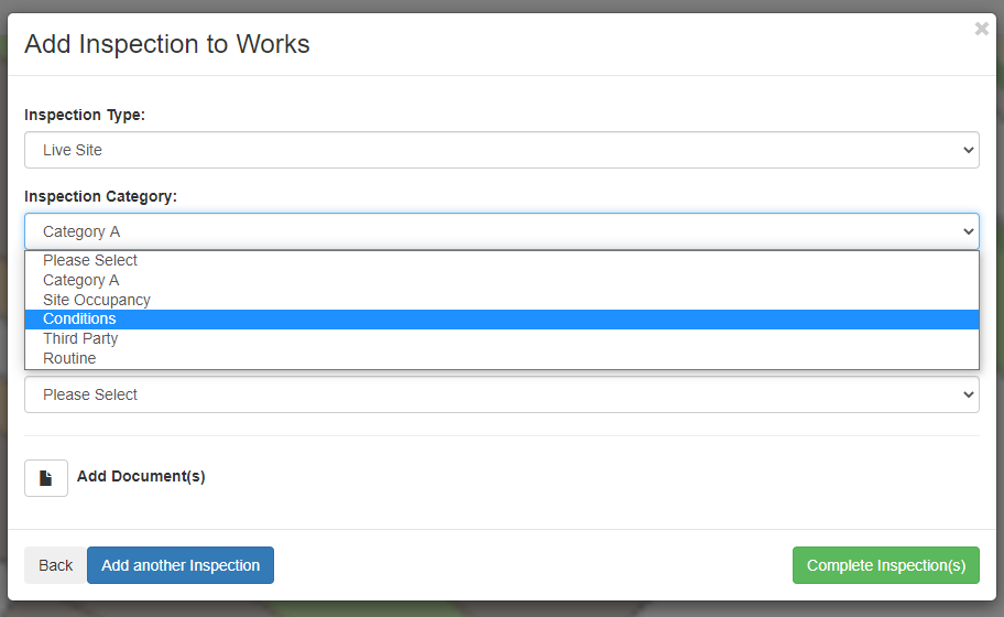 In the case of a Live Site, the conditions of the works order are clearly displayed to ensure the inspector can undertake Condition Inspections. The inspector can also click through to see the permit application should they require more information.